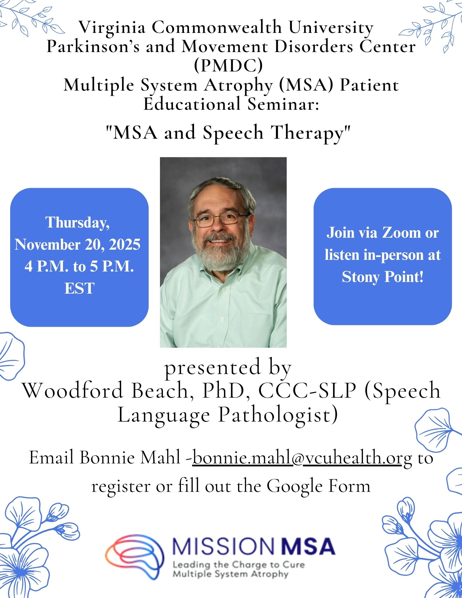 VCU PMDC MSA Educational Seminar: MSA and Physical Therapy
